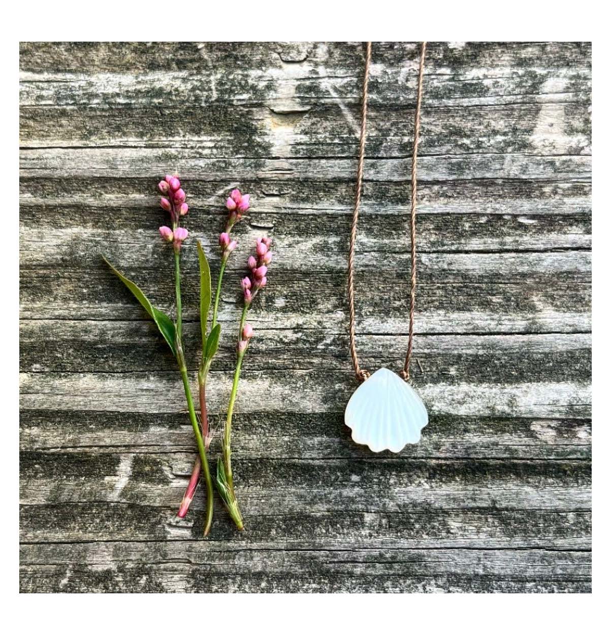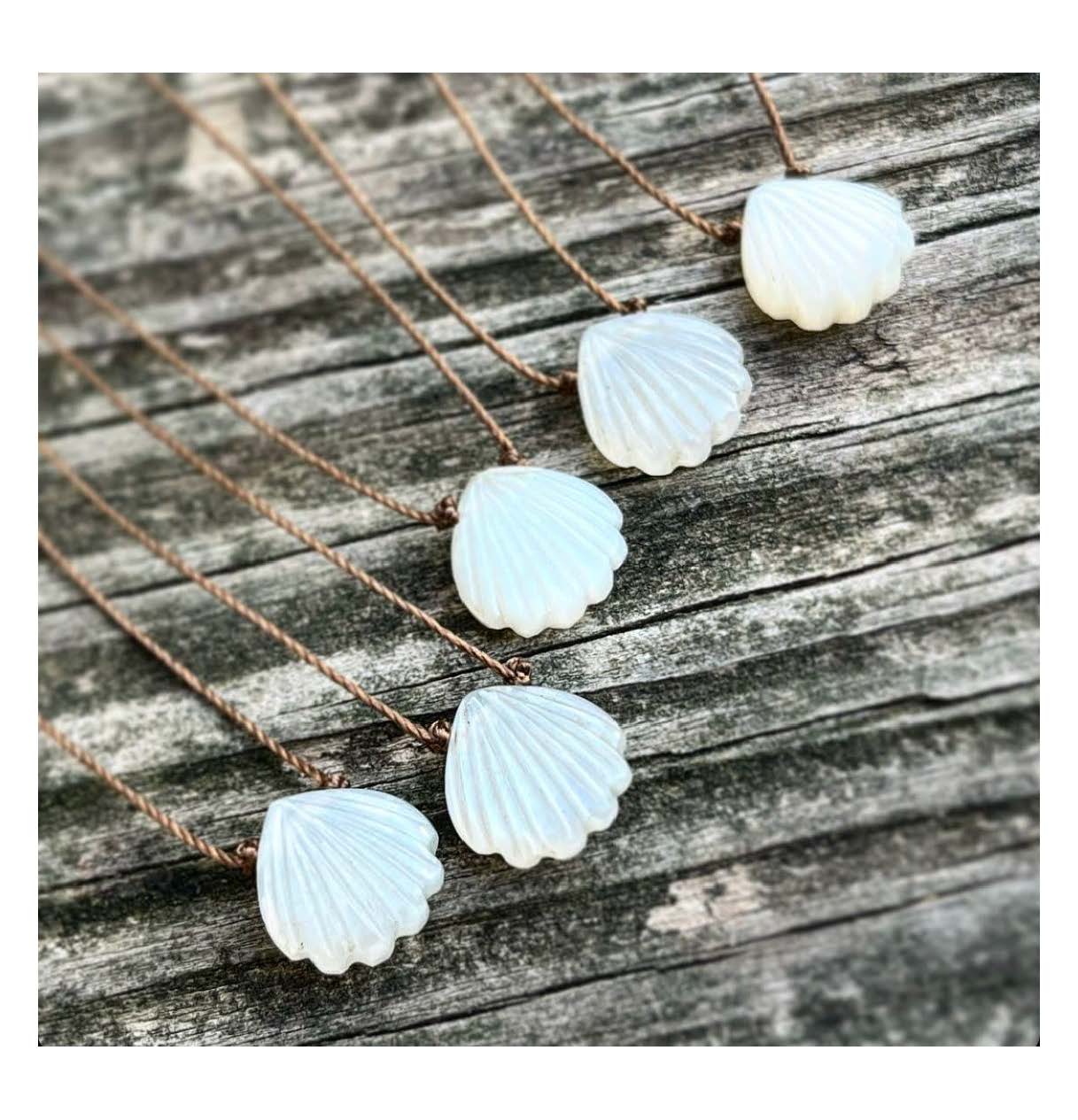 Beautiful carved white moonstone seashell on hand knotted light brown cord - heat set delicate nylon thread with strong durability and resistance to fraying. sterling...